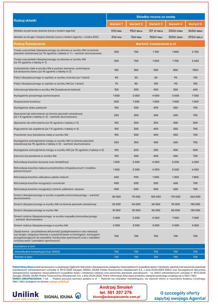 OFERTA UBEZPIECZENIA NNW NA ROK 2025 / 2026